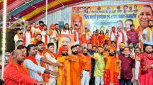 मुख्यमंत्री योगी आदित्यनाथ के चित्र पर वैदिक मंत्रों के बीच कराया दुग्ध स्नान