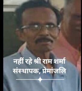 जी हाँ, हम बात कर रहे हैं प्रेमांजलि साहित्यिक संस्था के संस्थापक श्री राम शर्मा जी की, जो अब इस दुनिया में नहीं रहे।