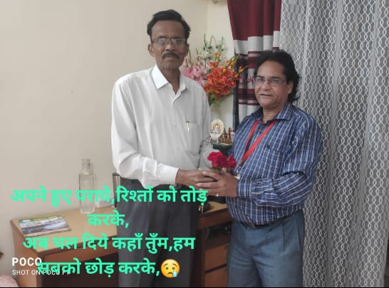 हिन्दी साहित्य के क्षेत्र में, अपना एक अलग मुकाम हासिल करने वाले,मृदुभाषी मिलनसार,श्रीराम शर्मा जी हम सबके बीच नहीं रहे ,इस दुखद समाचार ने तो जैसे ह्रदय को झकझोर कर रख दिया, विश्वास नहीं हो रहा है कि हमने शर्मा जी रुप में, एक वरिष्ठ साहित्यकार, व एक महान शख्सियत को आज खो दिया, जिसकी कमी हमेशा खलती रहेगी, जब वे अस्वस्थ चल रहे थे उसी दौरान मैंने उनके निवास स्थान पर जाकर, उनसे मुलाकात की,यह तस्वीर भी उसी समय की है,