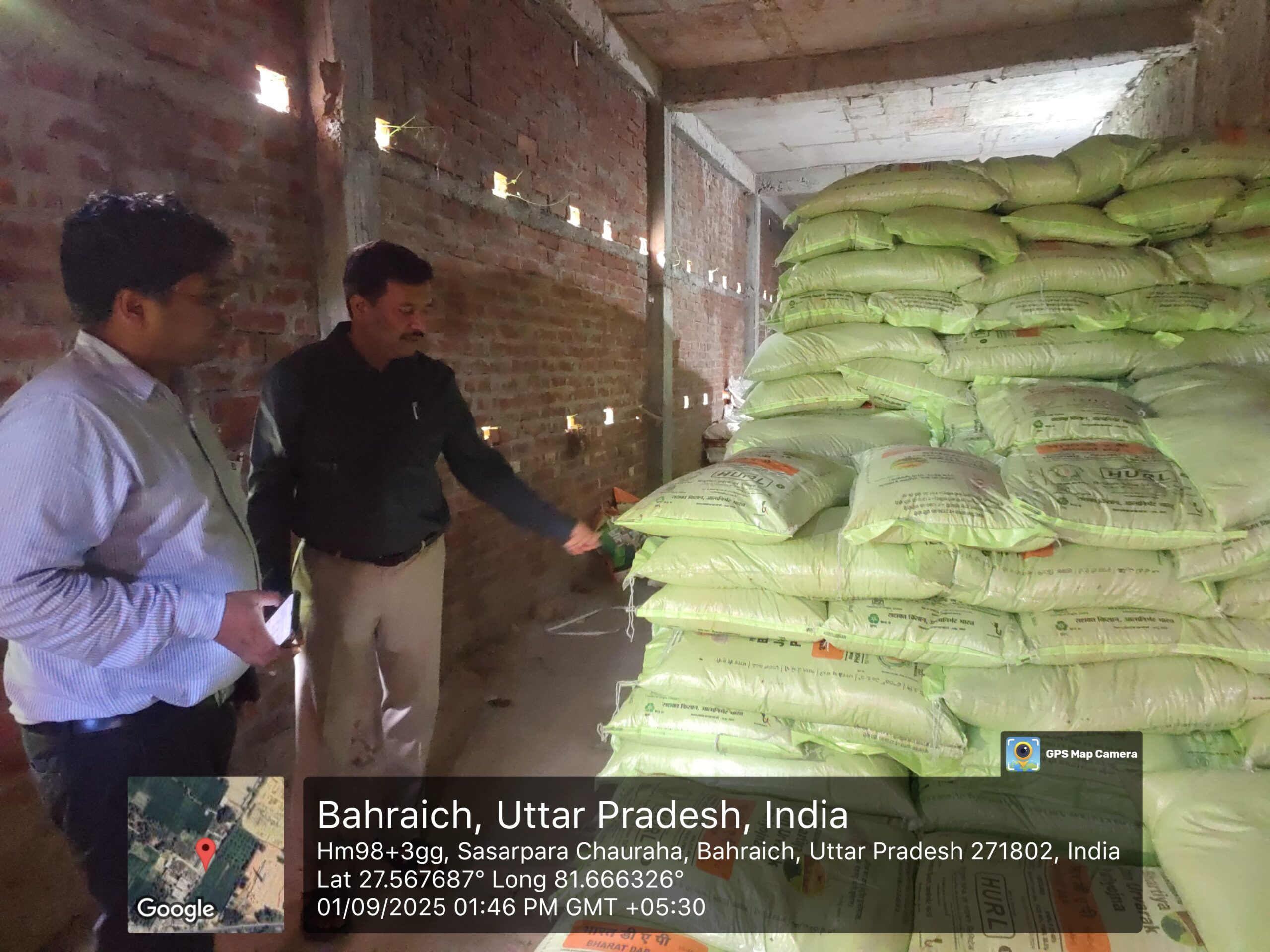 बहराइच 01 सितम्बर। जनपद में यूरिया वितरण का जायजा लेने के उद्देश्य से मुख्य विकास अधिकारी मुकेश चन्द्र ने जिला कृषि अधिकारी डाॅ सूबेदार यादव के साथ विकास खण्ड चित्तौरा के बहुउद्देशीय सहकारी समिति डीहा का मुख्य विकास अधिकारी मुकेश चन्द्र द्वारा निरीक्षण किया तथा समिति पर मौजूद किसानों से संवाद स्थापित करते हुए यूरिया वितरण के सम्बंध में आवश्यक जानकारी भी प्राप्त करते हुए कहा कि यूरिया प्राप्त करने में किसी प्रकार की समस्या हो तो उच्च अधिकारियों को अवगत कराये।