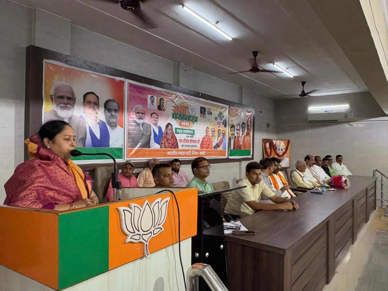 बस्ती ( दैनिक अनुराग लक्ष्य ) प्रधानमंत्री नरेन्द्र मोदी के 75वें जन्मदिवस के अवसर पर भारतीय जनता पार्टी द्वारा चलाए जा रहे “सेवा पखवाड़ा अभियान” के अंतर्गत शनिवार को भाजपा जिला कार्यालय बस्ती में प्रबुद्ध वर्ग संवाद कार्यक्रम का आयोजन किया गया। इस कार्यक्रम में प्रबुद्ध वर्ग के वरिष्ठजनों, बुद्धिजीवियों, सामाजिक कार्यकर्ताओं एवं पार्टी पदाधिकारियों ने बड़ी संख्या में सहभागिता की। कार्यक्रम की अध्यक्षता भाजपा जिलाध्यक्ष विवेकानन्द मिश्र ने की तथा मुख्य अतिथि के रूप में प्रदेश उपाध्यक्ष एवं पूर्व सांसद नीलम सोनकर उपस्थित रहीं।