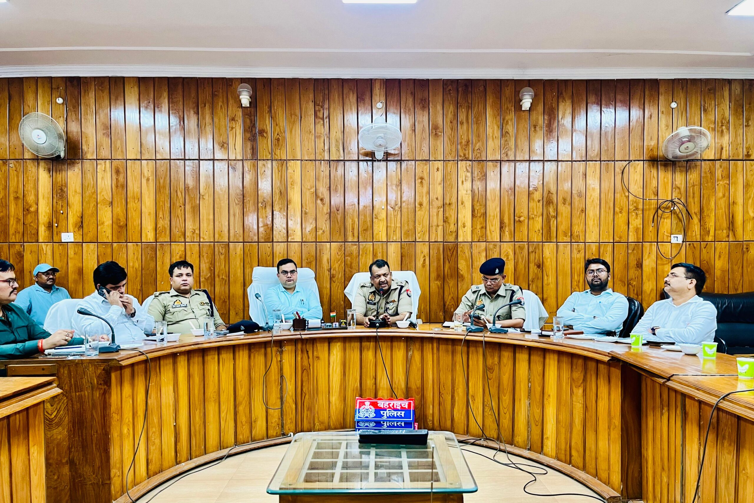 आज दिनांक 20.09.2025 को रिजर्व पुलिस लाइन बहराइच में जिलाधिकारी बहराइच व पुलिस अधीक्षक द्वारा आगामी त्यौहारों (शारदीय नवरात्रि दुर्गा पूजा,दशहरा,छठ पूजा,दीपावली ) को शान्तिपूर्ण एंव व्यवस्थित रुप से मनाने के उद्धेश्य से पुलिस व प्रशासन की सयुक्त बैठक आयोजित की गई। त्यौहारों को सकुशल सम्पन्न कराये जाने के दृष्टिगत जनपद को सम्पूर्ण जनपद को 06 सुपर जोन, 44 जोन, 124 सेक्टर में विभाजित किया गया है। सभी सुपर जोनल मजिस्ट्रेट एंव पुलिस अधिकारी, सभी सेक्टर मजिस्ट्रेट, पुलिस अधिकारी एंव दुर्गा पूजा समिति के पदाधिकारी ,पांडाल समितियों के अध्यक्ष व सदस्य,क्षेत्र के संभ्रांत व्यक्तिय व ग्राम प्रधान मौजूद रहे तथा सभी को सुरक्षा सम्बन्धी दिए गए आवश्यक दिशा- निर्देश।
