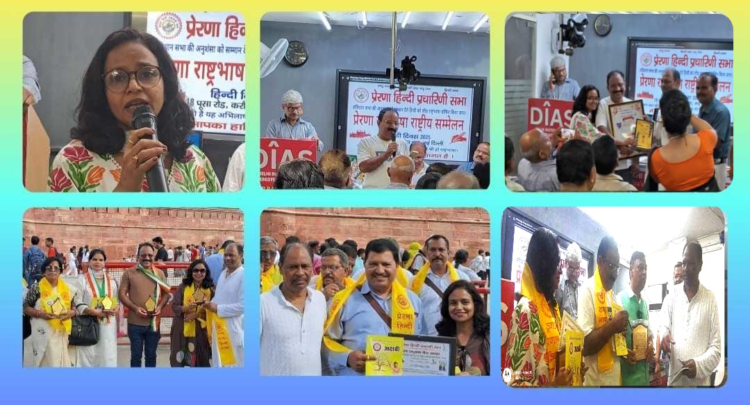 नई दिल्ली- हिंदी दिवस के उपलक्ष्य में प्रेरणा हिन्दी प्रचारिणी सभा द्वारा भव्य हिन्दी राष्ट्रभाषा गौरव सम्मेलन का सफल आयोजन किया गया। सम्मेलन का मुख्य उद्देश्य हिन्दी को राजभाषा से राष्ट्रभाषा का दर्जा दिलाने की दिशा में देशव्यापी जागरूकता फैलाना था।
