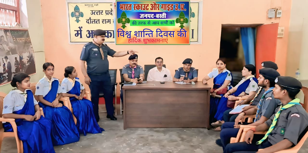 बस्ती ( दैनिक अनुराग लक्ष्य ) भारत स्काउट और गाइड उत्तर प्रदेश जिला संस्था बस्ती के सभागार में विश्व शांति दिवस का कार्यक्रम समारोह पूर्वक मनाया गया, इस अवसर पर सर्व धर्म प्रार्थना, संगोष्ठी, परिचर्चा, वाद विवाद प्रतियोगिता आदि का आयोजन किया गया, जिला एडल्ट रिसोर्स आयुक्त स्काउट डॉ हरेन्द्र प्रताप सिंह, जिला स्काउट कमिश्नर हरिराम बंसल, जिला गाइड कमिश्नर संधिला चौधरी, सहायक प्रादेशिक संगठन आयुक्त स्काउट बस्ती मण्डल बस्ती राकेश कुमार सैनी, जिला कोषाध्यक्ष विद्याधर वर्मा, जिला सचिव लीडर ट्रेनर डॉ कुलदीप सिंह, जिला प्रशिक्षण आयुक्त गाइड लीडर ट्रेनर सत्या पांडेय, जिला प्रशिक्षण आयुक्त स्काउट भूपेश कुमार सिंह, जिला संगठन आयुक्त स्काउट प्रताप शंकर पाण्डेय आदि ने विश्व शान्ति दिवस मनाए जाने की उपादेयता पर प्रकाश डाला, ट्रेंनिग काउन्सलर आदर्श मिश्रा, विजय, प्रमोद, नन्दिनी, खुशबू, चाँदनी, गरिमा आदि की सहभागिता रही।