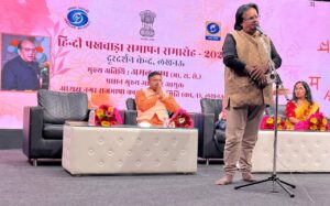 शायद इसी खुशबू को लखनऊ दूरदर्शन ने भी महसूस किया जिसका सुखद परिणाम यह रहा कि हिंदी साहित्य के तमाम नामचीन नगीनों के साथ सुप्रसिद्ध उद्घोषक संजय पुरुषार्थी के संचाल ने इस आयोजन यादगार को बना दिया। आपको बताते चलें कि दूरदर्शन केन्द्र लखनऊ के स्टूडियो में अति उत्तम रहा हिन्दी पखवाड़ा समापन समारोह पर आयोजित कवि सम्मेलन | सुप्रसिद्ध उद्घोषक कवि संजय पुरुषार्थी के मंच संचालन में लखनऊ के वीर रस के कवि अतुल बाजपेई लखनऊ की ही श्रृंगार की कवयित्री श्वेता शुक्ला और भगवान श्रीराम के जन्म भूमि अयोध्या से पधारीं कवयित्री ऊष्मा सजल सहित सभी हस्ताक्षरों ने सर्वप्रथम राजभाषा हिन्दी पर अपनी अपनी रचनाओं का सस्वर पाठ किया |