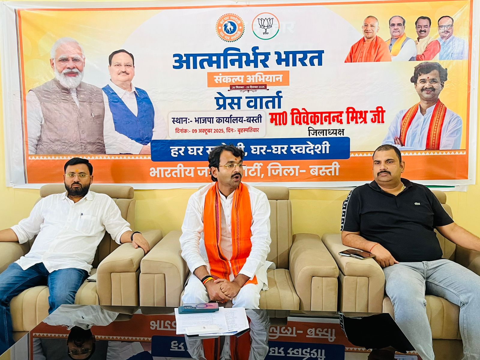 बस्ती ( अनुराग लक्ष्य न्यूज ) भारतीय जनता पार्टी बस्ती जिले द्वारा गुरुवार को भाजपा कार्यालय में एक प्रेस वार्ता आयोजित की गई। इस दौरान जिलाध्यक्ष विवेकानन्द मिश्र ने 25 सितम्बर से 25 दिसम्बर 2025 तक चलने वाले “आत्मनिर्भर भारत संकल्प अभियान” की विस्तृत जानकारी दी। उन्होंने बताया कि इस अभियान का मुख्य उद्देश्य प्रधानमंत्री नरेंद्र मोदी के “विकसित भारत 2047” के लक्ष्य को साकार करना है। अभियान का फोकस सामाजिक-आर्थिक आत्मनिर्भरता, स्थानीय उद्योगों को सशक्त करना और नागरिक सहभागिता बढ़ाना रहेगा।