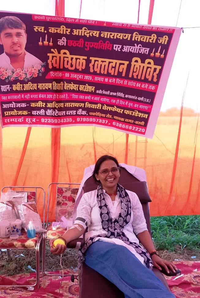 रक्तदान करने वालों में चंचल शुक्ला, दिव्यांश, अमित उपाध्याय, बालकृष्ण वर्मा, अनुराग श्रीवास्तव, वृजेश तिवारी, रोहित ओझा, गर्जन, आचार्य पाठक, राजनाथ तिवारी, विवेक तिवारी, देवेन्द्र मिश्रा, महेन्द्र तिवारी, राजभवन, विकास शुक्ला, अम्बिकेश, रंजना तिवारी, अनिल तिवारी, सुधांशु पाठक, दुर्गेश गुप्ता, शिवांग तिवारी के साथ ही कुल 30 लोग शामिल रहे। बस्ती चेरीटेबल ब्लड बैंक के विजय सिंह, मुकेश गौतम, अवधेश कुमार आदि ने रक्तदान कराने में योगदान दिया।