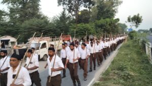 बस्ती। राष्ट्रीय स्वयंसेवक संघ (आरएसएस) के शताब्दी वर्ष पूर्ण होने के उपलक्ष्य में हर्रैया कस्बे में पंथ संचलन कार्यक्रम आयोजित किया गया। संघ के गणवेश में स्वयंसेवकों ने नगर की सड़कों पर कदमताल की। स्थानीय लोगों ने यात्रा पर पुष्प वर्षा कर स्वयंसेवकों का स्वागत किया। बैंड बाजे की मधुर धुन और केसरिया ध्वजों की शोभा से संपूर्ण कस्बा राष्ट्रभक्ति के रंग में रंग गया।