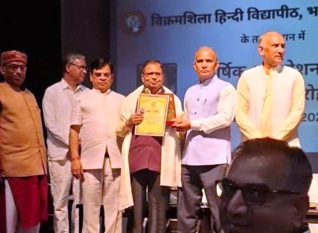 बस्ती । वरिष्ठ कवि डॉ. राम कृष्ण लाल ‘जगमग’ को उनके साहित्यिक योगदान के लिए विक्रमशिला हिन्दी विद्यापीठ द्वारा उन्हें ‘साहित्य वाचस्पति पुरस्कार’ से सम्मानित किया गया। उन्हें यह पुरस्कार उत्तराखण्ड संस्कृत अकादमी हरिद्वार के आडिटोरियम में राज्य मंत्री श्यामबीर सैनी, संस्कृत अकादमी के निदेशक डा. आनन्द भारद्वाज, कुलपति डा. दयानन्द जायसवाल ने दिया।