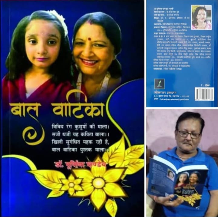 वरिष्ठ कवयित्री/सेवानिवृत्त शिक्षिका डा. पूर्णिमा पाण्डेय ‘पूर्णा’ का ‘पूर्णिमांजलि’ और ‘पूर्णिमा भाव वीथिका’ के बाद बाल वाटिका पाठ को के बीच है। माना जाता है कि बच्चों के मनोभावों को पढ़ना इतना आसान नहीं होता अपेक्षाकृत बड़ों के।बतौर रचनाकार मेरा मानना है कि बढ़ो के लिए लिखना उतना कठिन नहीं जितना जी बच्चों के लिए शायद इसीलिए बच्चों के लिए बच्चों के लिए रचनाकारों की संख्या काफी कम है।