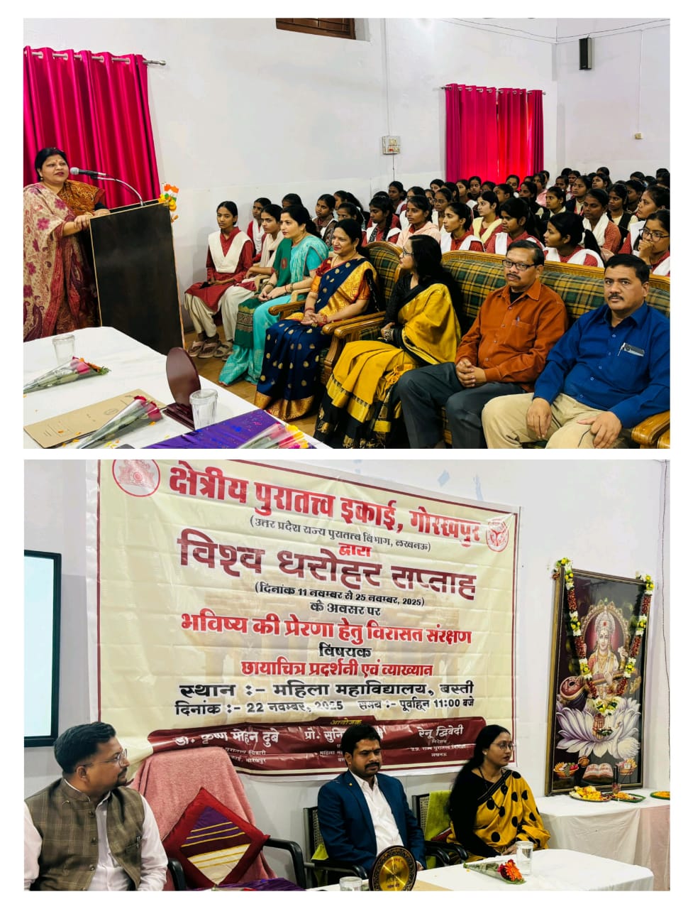 बस्ती ( अनुराग लक्ष्य न्यूज ) विश्व विरासत सप्ताह (19-25 नवम्बर) के अवसर पर आज महिला स्नातकोत्तर महाविद्यालय, बस्ती में क्षेत्रीय पुरातत्व इकाई, गोरखपुर एवं प्राचीन इतिहास पुरातत्व एवं संस्कृति विभाग के संयुक्त तत्वावधान में ” *भविष्य की प्रेरणा हेतु धरोहर का संरक्षण विषयक – छाया चित्र प्रदर्शनी एवं व्याख्यान “*