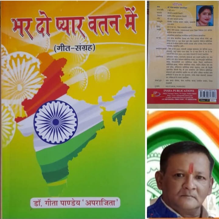 इसी क्रम में पारिवारिक, सामाजिक, आध्यात्मिक , राजनैतिक और साहित्यिक जिम्मेदारियों को निर्वहन करते हुए वरिष्ठ शिक्षिका /कवयित्री डॉ गीता पाण्डेय अपराजिता का गीत संग्रह “भर दो प्यार वतन में” पाठकों की अदालत में विविध सुरम्य गीतों के साथ अपनी उपस्थिति दर्ज कराने को तत्पर है।