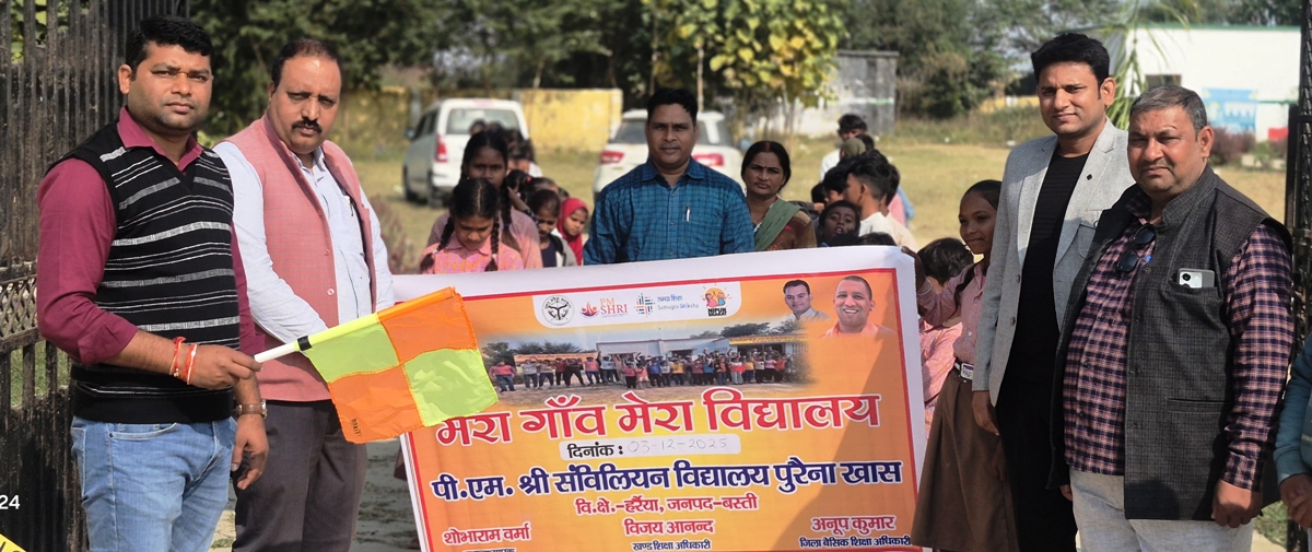 बस्ती। हर्रैया ब्लॉक के पीएम श्री कंपोजिट विद्यालय पुरैना खास विद्यालय में मेरा गांव मेरा विद्यालय कार्यक्रम का आयोजन बुधवार को किया गया। कार्यक्रम का शुभारंभ ग्राम प्रधान मोहम्मद सलीम ने मां सरस्वती के चित्र पर माल्यार्पण और दीप प्रज्ज्वलित करके किया। इस अवसर पर विद्यालय के छात्र-छात्राओं ने रैली निकाली। रैली को ब्लॉक के एआरपी रवीश कुमार मिश्र और पूर्व एआरपी गिरिजेश बहादुर सिंह ने एसएमएसी सदस्यों की मौजूदगी में झंडी दिखाकर रवाना किया। एआरपी रवीश कुमार मिश्र ने कार्यक्रम में आए अभिभावकों और बच्चों को संबोधित किया। उन्होंने कहा कि बच्चों के सर्वांगीण विकास में विद्यालय, माता-पिता और समुदाय की महत्वपूर्ण भूमिका होती है। शिक्षा के क्षेत्र में बेहतर परिणाम प्राप्त करने के लिए सभी का मिलकर सहयोग करना आवश्यक है। कहा कि शैक्षिक गुणवत्ता अच्छी करने के लिए हम सभी को सामूहिक प्रयास करने होंगे। पूर्व एआरपी गिरिजेश बहादुर सिंह ने कहा कि इस कार्यक्रम का उद्देश्य स्कूल और समुदाय के बीच सामंजस्य को मजबूत करना है। कहा कि अभिभावकों की सक्रियता से बच्चों के शैक्षिक स्तर में सकारात्मक बदलाव अवश्य होगा।
