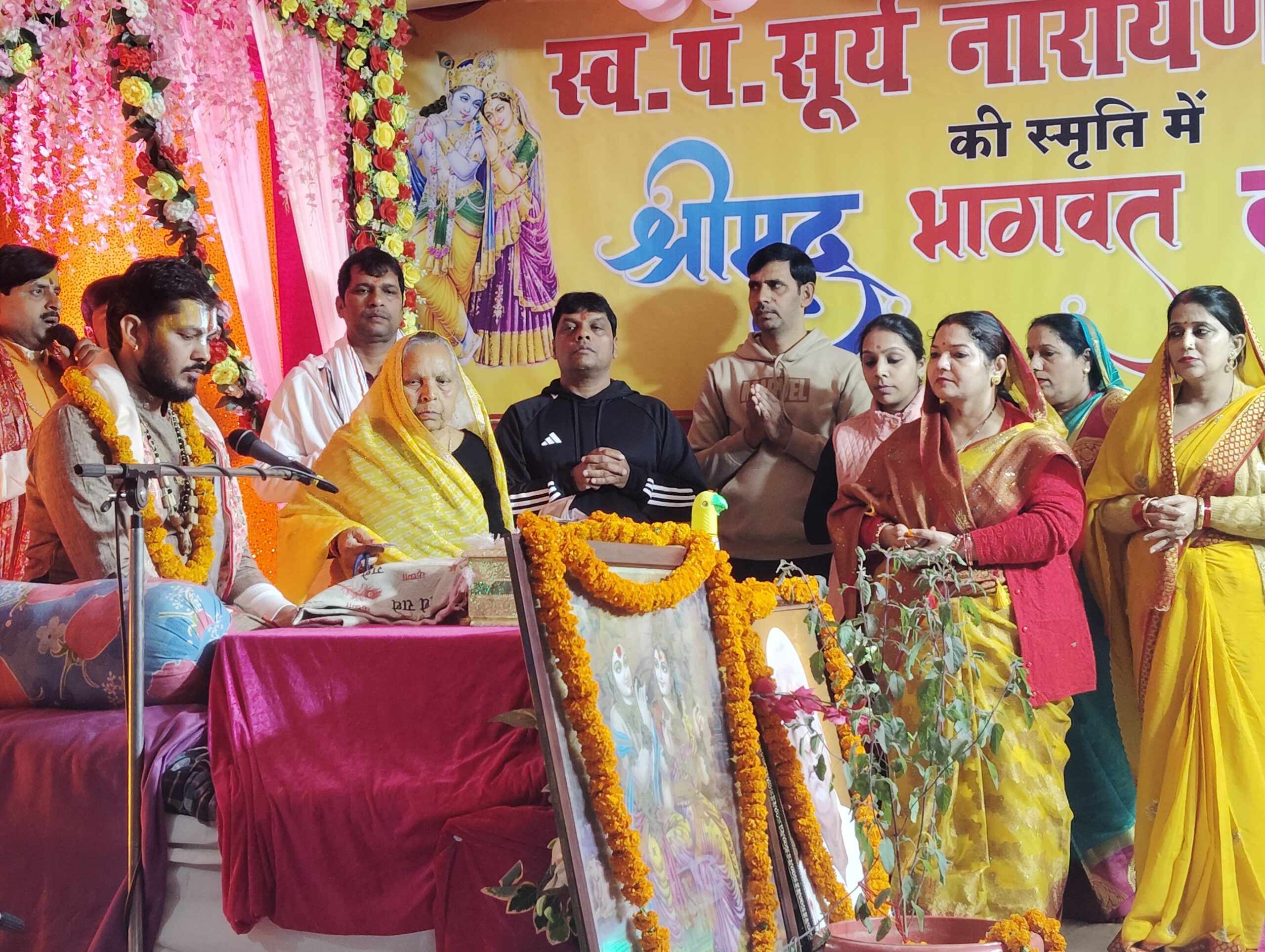 कथा की मुख्य यजमान “चतुर्वेदी विला” की मुखिया चंद्रावती देवी के नेतृत्व में सूर्या ग्रुप के चेयरमैन डा उदय प्रताप चतुर्वेदी, एसआर के एमडी राकेश चतुर्वेदी, रत्नेश चतुर्वेदी ने कथा व्यास का तिलक और बांके बिहारी की आरती करके कथा का शुभारंभ कराया।