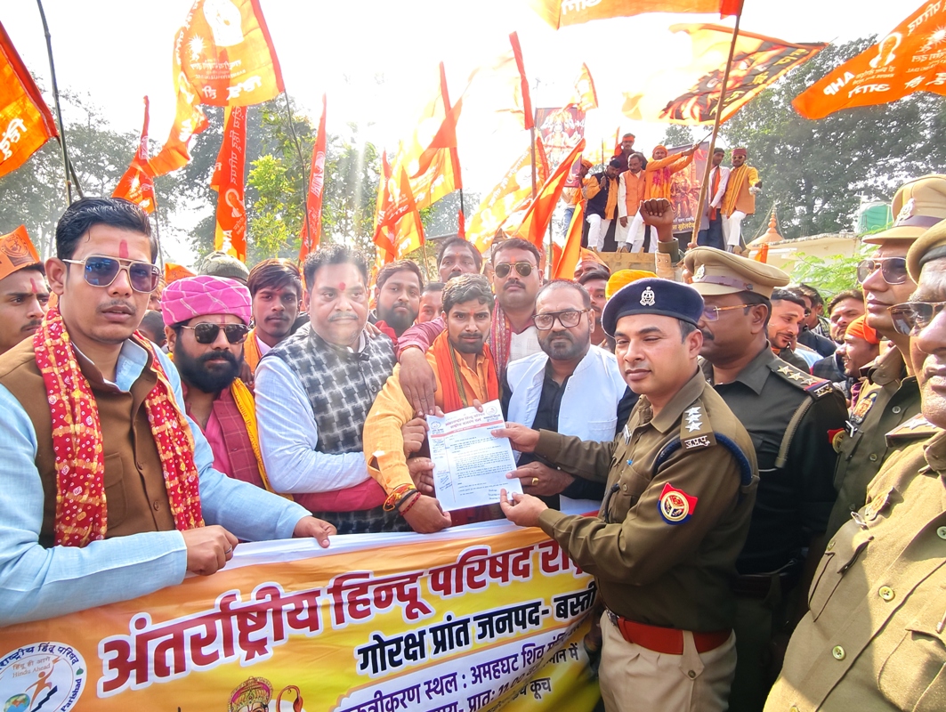 बस्ती ( अनुराग लक्ष्य न्यूज ) शनिवार को अंतर्राष्ट्रीय हिन्दू परिषद जिला अध्यक्ष स्नेह पाण्डेय और राष्ट्रीय बजरंग दल जिला अध्यक्ष मनमोहन त्रिपाठी के आवाहन पर बहराइच कूच करने के लिये बड़ी संख्या में लोग अमहट घाट स्थित सिद्धेश्वर मंदिर परिसर में एकत्र हुये। पहले से मौजूद सीओ सिटी भारी पुलिस बल के साथ यहां मौजूद रहे। लम्बे समय तक चली वार्ता के बाद सीओ सिटी के आश्वासन पर यात्रा को स्थगित कर दिया गया।