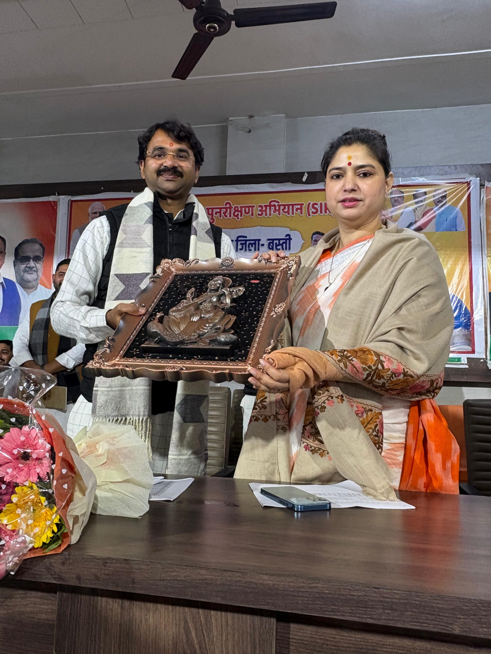 बस्ती। जिला भाजपा कार्यालय में सोमवार को विशेष गहन पुनरीक्षण (SIR) अभियान की समीक्षा बैठक आयोजित की गई। बैठक की अध्यक्षता जिलाध्यक्ष विवेकानन्द मिश्र ने की, जबकि मुख्य अतिथि के रूप में भाजपा की प्रदेश महामंत्री प्रियंका सिंह रावत उपस्थित रहीं। बैठक में जिलेभर के वरिष्ठ पदाधिकारी, जनप्रतिनिधि व कार्यकर्ता शामिल हुए।
