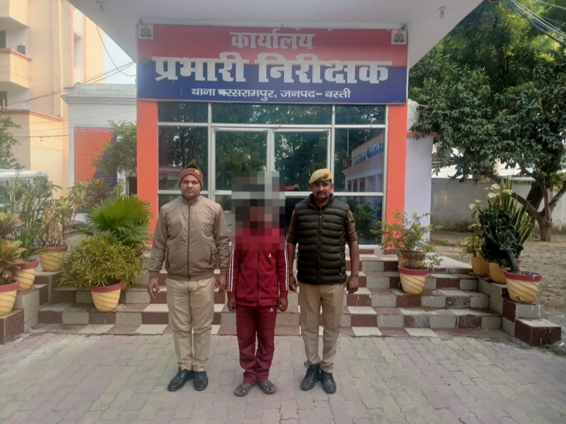 बस्ती उत्तर प्रदेश के बस्ती जिले के थानाध्यक्ष परसरामपुर भानु प्रताप सिंह के कुशल नेतृत्व में थाना स्थानीय पर पंजीकृत मु0अ0सं0 361/2025 धारा 64(2)ड, 123, 108, 351(2) BNS व 67 आईटी एक्ट से सम्बंधित अभियुक्त मोनू उर्फ मनीष पुत्र रामकुमार ग्राम मडेरिया, थाना परसरामपुर, जनपद बस्ती, को गिरफ्तार कर नियमानुसार आवश्यक विधिक कार्यवाही किया गया