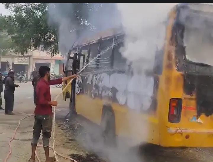 शॉर्ट सर्किट से स्कूल बस में आग, ड्राइवर ने 3 बच्चों को बचाया, फायर ब्रिगेड टीम ने पाया काबू