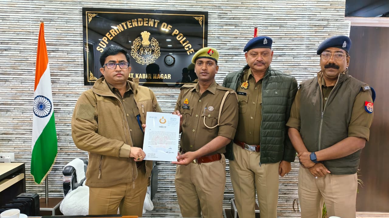 संतकबीरनगर – पुलिस अधीक्षक संदीप कुमार मीना ने आज जनपद में अपराध नियंत्रण, अपराधियों की गिरफ्तारी एवं विभिन्न महत्वपूर्ण मामलों के सफल अनावरण में सराहनीय भूमिका निभाने वाले सर्विलांस सेल के कर्मचारी आरक्षी नितिश कुमार, आरक्षी अमरजीत मौर्य को उनके उत्कृष्ट एवं प्रशंसनीय कार्य के लिए प्रशस्ति पत्र एवं नगद पुरस्कार प्रदान कर सम्मानित किया।