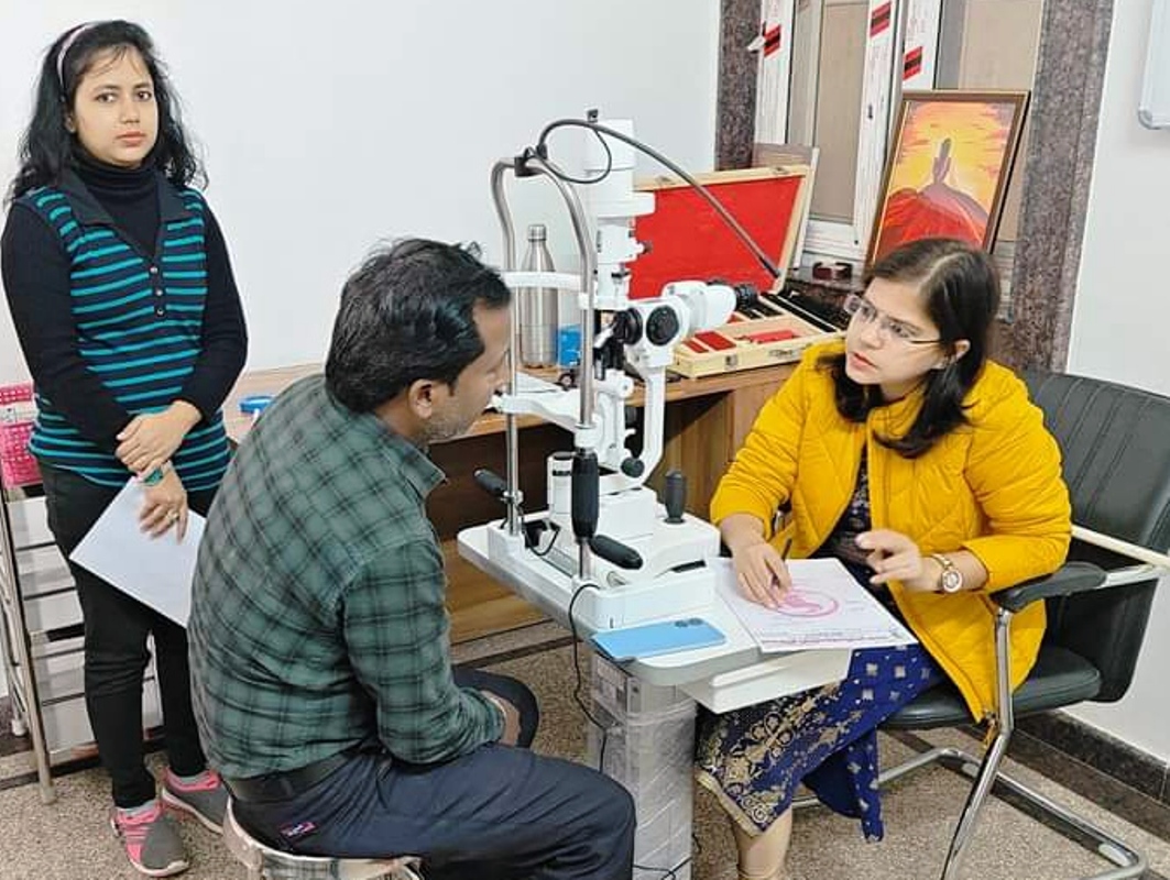 मरीजों का परीक्षण करते हुये नेत्र सर्जन डा. ज्योति सिंह