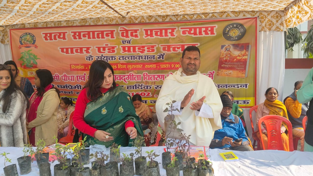 तुलसी दिवस के अवसर पर *सत्य सनातन वेद प्रचार न्यास* तथा *पावर एंड प्राइड क्लब* के संयुक्त तत्वावधान में लखनऊ के जानकीपुरम् स्थित अटल चौराहे पर विशेष कार्यक्रम आयोजित किया गया।इस दौरान कार्यकर्ताओं ने राहगीरों और स्थानीय लोगों को तुलसी का पौधा भेंट किया तथा उनसे तुलसी दिवस मनाने का आग्रह किया। न्यास के संस्थापक आचार्य विश्वव्रत शास्त्री ने कहा कि तुलसी भारतीय संस्कृति और सनातन परंपरा का महत्वपूर्ण प्रतीक है, जिसका धार्मिक, औषधीय और पर्यावरणीय महत्व है। उन्होंने लोगों से अपने घरों में तुलसी लगाने की अपील की । क्लब की अध्यक्षा दीपाली श्रीवास्तव ने बताया कि इस पहल का उद्देश्य पर्यावरण संरक्षण के साथ-साथ सांस्कृतिक जागरूकता बढ़ाना है। न्यास के संरक्षक डॉ.सत्यकाम आर्य ने कहा कि गीता हमें सन्देश देती है कि यह जीवन शयनक्षेत्र नहीं है कुरुक्षेत्र है इसलिए कर्म करो। क्या कर्तव्य है और क्या अकर्तव्य है यह समझने के लिए गीता को पढ़ें और अनासक्त कर्मेयोगमय मार्ग को घर घर तक पहुँचाकर हम कर्तव्य कर्म का प्रचार करें। न्यासी अनुराग शास्त्री ने गीता का महत्व बताते हुए कहा-“गीता एक विश्वविश्रुत ग्रन्थ है । संसार में सभी देशों के विद्वानों ने समान रूप से इसका आदर किया तथा इसके ज्ञान से अपने आपको लाभान्वित किया है । न्यास के अध्यक्ष नवीन कुमार सहगल ने कहा की आज हम पश्चात्य सभ्यता में रंग कर क्रिसमस ट्री के कारण तुलसी का महत्व भूल गए हैं। वास्तव में तुलसी के गुणों की तुलना में क्रिसमस ट्री कहीं नहीं ठहरता । तुलसी के गुणों पर मोहित होकर ही हमारे ऋषियों ने इसे देव वृक्ष कहा है और यही असली क्रिसमस ट्री तथा सनातन धर्म के दिव्य पुरुष गुरु नानक देव कबीर दास महात्मा हंसराज तेग बहादुर आदि ही सफेद दाढ़ी में असली सेंटा क्लाज हैं। इस अवसर पर मदर्स प्राइड स्कूल की संस्थापिका श्रीमती रश्मि गुप्ता ने भी सभा को संबोधित किया। इस अवसर पर प्रमुख रूप से भानु प्रताप सिंह चौहान ,प्रियंका शास्त्री ,कविता सहगल, संतोष त्रिपाठी ,अरविंद गुप्त, सुरेश शर्मा, अवधेश सिंह, तारा सिंह, संजीव मिश्र, यशोदा शर्मा आदि प्रमुख लोग उपस्थित रहे।