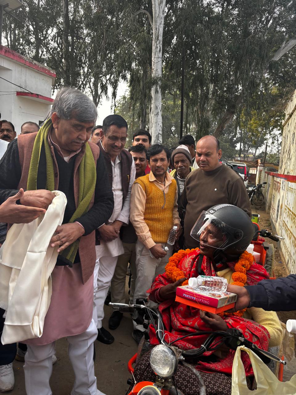 बस्ती । दिव्यांग सशक्तिकरण और सांसद निधि के संयुक्त अंशदान से सोमवार को कप्तानगंज ब्लाक परिसर में पूर्व मंत्री व सांसद रामप्रसाद चौधरी ने 8 दिव्यांगों को मोटराइज्ड ट्राई साइकिल वितरित की । उन्होंने कहा कि समाज के हर व्यक्ति का चतुर्दिक विकास होना चाहिए । इसके लिए हम सबको हमेशा प्रयत्नशील रहना चाहिए । दिव्यांग जनों को समाज के मुख्य धारा से जोड़ने के लिए हमने हमेशा प्रयास किया है । उसी की एक कड़ी में आज आठ लोगों को लाभान्वित किया जा रहा है । ऐसे प्रयत्न निरंतर चलते रहेंगे । उन्होंने कहा कि हमारा हमेशा प्रयास समाज के सभी वर्गों को अधिक से अधिक लाभ दिलाने का रहा है । जो जिस तरह से पात्रता रखता है । उसे सुविधा दिलाना हमारे वरीयता क्रम में शामिल है । आज से यह आठ लोग आसानी से कहीं आ जा सकेंगे । अब इन्हें इस कार्य के लिए किसी दूसरे का मुंह नहीं देखना पड़ेगा ।दिव्यांग मनीष कुमार, संत कुमार ,फूलमती ,राधेश्याम,बेबी मिश्रा, मोहम्मद इलियास ,बुधीराम और गोकरन लाभ पाकर काफी प्रसन्न दिखाई पड़े । इस दौरान कप्तानगंज के नगर पंचायत अध्यक्ष चंद्र प्रकाश चौधरी ए डी ओ समाज कल्याण कमलेश शुक्ल , एडीओ आईएसबी नरेंद्र पांडेय ,मनीष चौधरी आज उपस्थित है