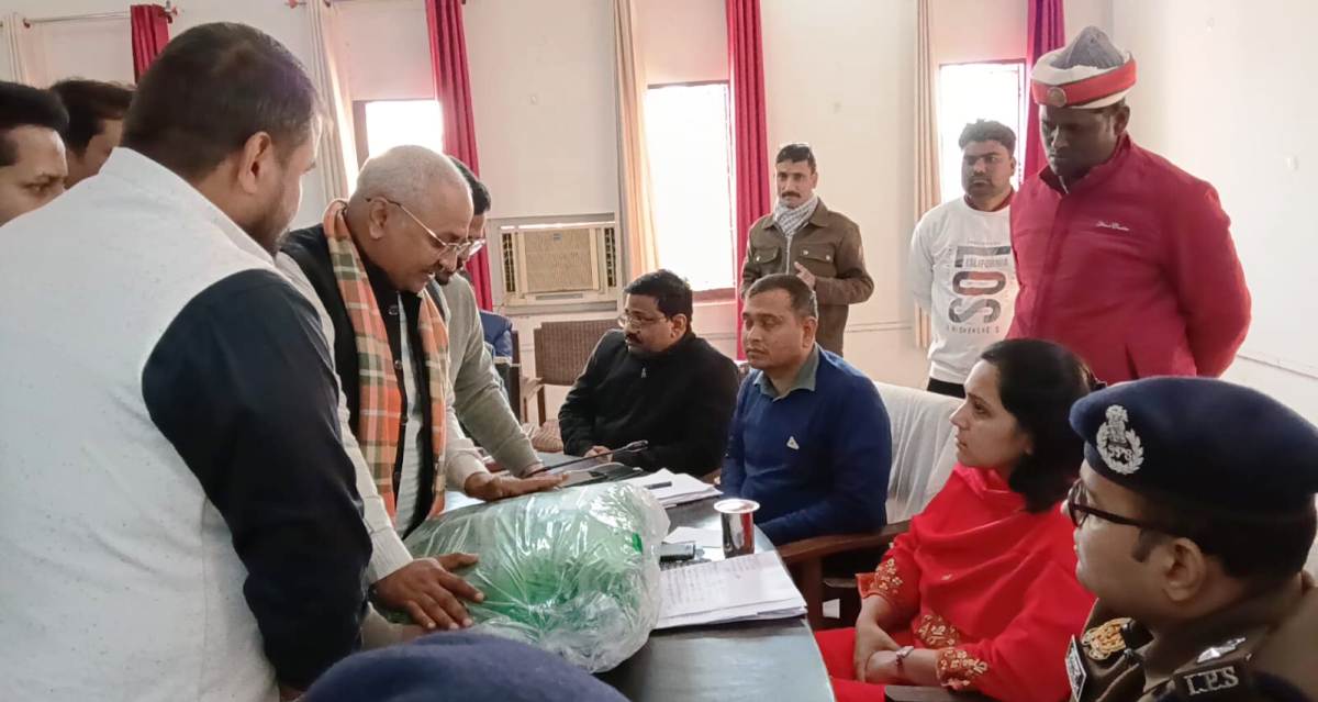 फटे तिरंगा झंडे को बदलने की मांगः डीएम को सौंपा नया झण्डा