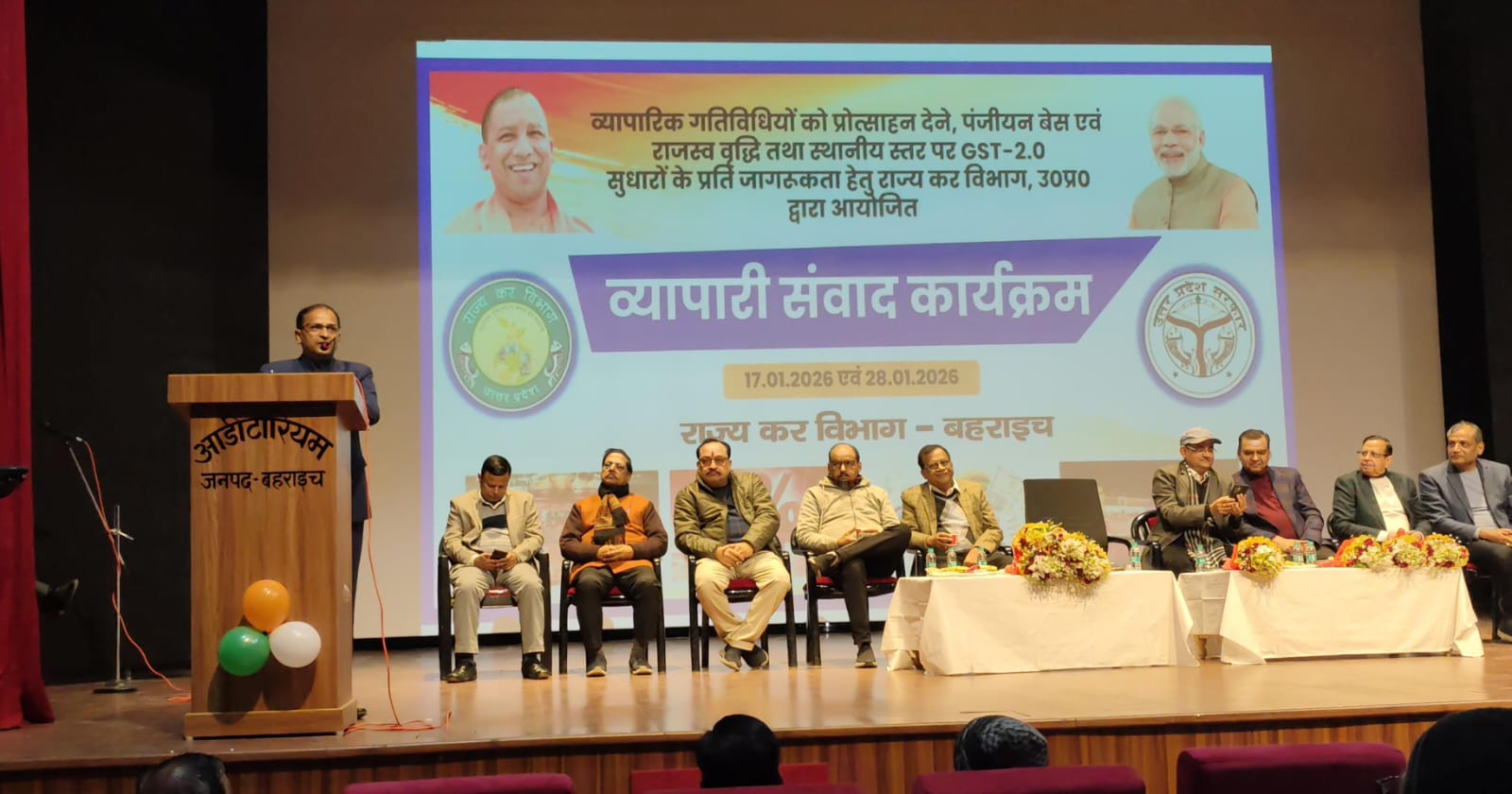 बहराइच 17 जनवरी। प्रदेश में व्यापारिक गतिविधियों के प्रोत्साहन, पंजीयन बेस एवं राजस्व वृद्धि तथा स्थानीय स्तर पर जीएसटी-2.0 सुधारों के प्रति जागरूकता हेतु उद्यमियों, करदाताओं एवं अन्य स्टेक होल्डर्स के साथ संवाद स्थापित करने के उद्देश्य से राज्य कर विभाग, बहराइच द्वारा उत्थान ऑडीटोरियम में आयोजित व्यापारी संवाद कार्यक्रम का पूर्व जिला अध्यक्ष, भाजपा श्याम करन टेकरीवाल व अपर आयुक्त ग्रेड-2 (अपील), राज्य कर, गोण्डा संभाग, गोण्डा डॉ. श्याम सुन्दर तिवारी द्वारा संयुक्त रूप से दीप प्रज्ज्वलित कर शुभारम्भ किया गया।