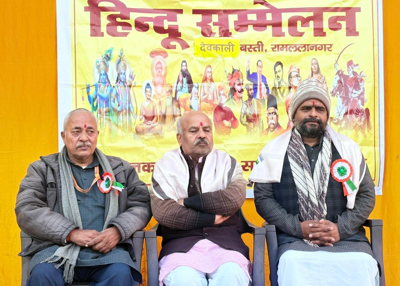 अयोध्या। राष्ट्रीय स्वयंसेवक संघ (RSS) रामलला नगर द्वारा देवकाली में आयोजित ‘हिंदू सम्मेलन’ में सनातन संस्कृति और भारत की दार्शनिक पहचान पर गहन विमर्श हुआ। कार्यक्रम के मुख्य अतिथि एवं शिवधाम काशी मंदिर के पीठाधीश श्री वत्साचार्य जी महाराज ने अपने ओजस्वी संबोधन में भारत नाम की दैवीय उत्पत्ति और हिन्दुस्तान की भौगोलिक सीमाओं पर ऐतिहासिक प्रकाश डाला।