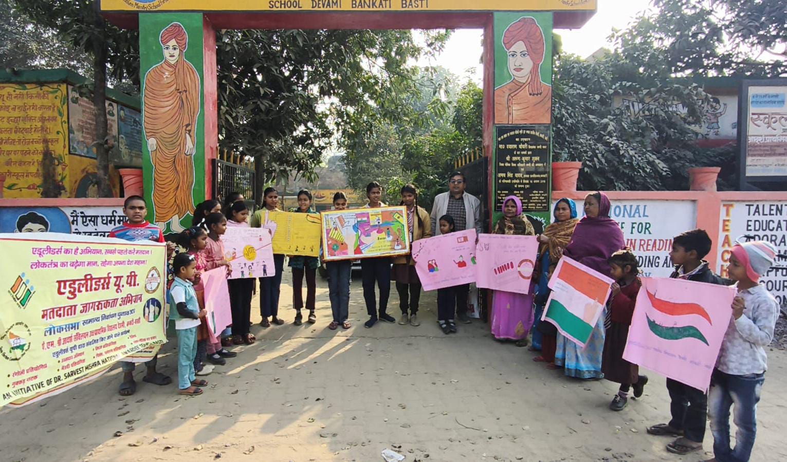 बस्ती ( अनुराग लक्ष्य न्यूज )  संविलियन आदर्श उच्च प्राथमिक विद्यालय देवमी में रविवार को मतदाता जागरूकता कार्यक्रम के अंतर्गत विद्यार्थियों के बीच निबंध, पोस्टर एवं रंगोली प्रतियोगिताओं का आयोजन किया गया। कार्यक्रम का उद्देश्य बच्चों में लोकतंत्र और मतदान के महत्व के प्रति जागरूकता पैदा करना रहा।