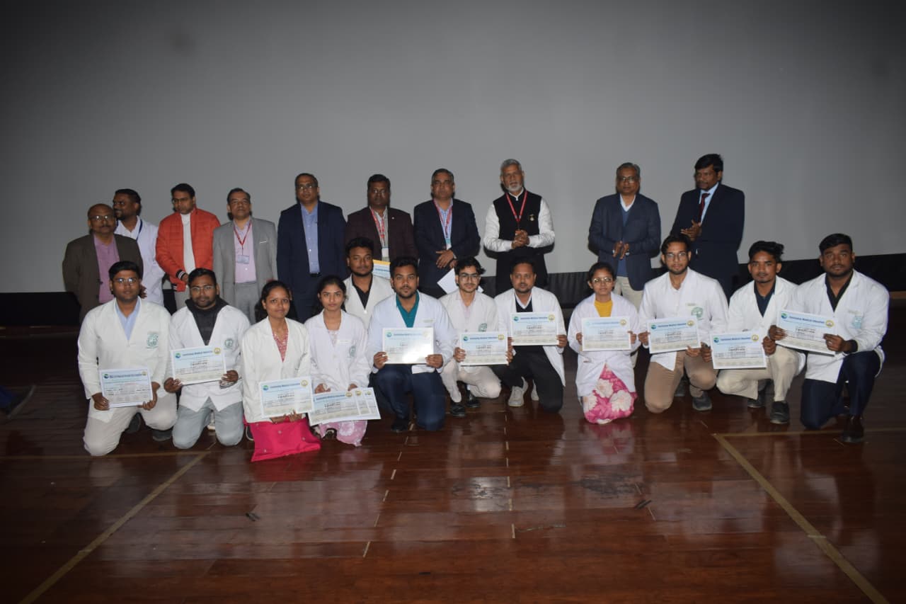 अम्बेडकर नगर।77 वे गणतंत्र दिवस की शुरुआत प्रधानाचार्य डॉ .मुकेश यादव के द्वारा एकेडमिक ब्लॉक के सामने समस्त संकाय सदस्यों के साथ तिरंगा फहराने से हुई। साथ में नर्सिंग स्टॉफ, कर्मचारियों और छात्रों की भी उपस्थिति रही। तिरंगा फहराने के उपरांत राष्ट्रगान एवं देश की अखंडता की शपथ लेने के सभी लोग अगले कार्यक्रम हेतु सरदार वल्लभभाई पटेल सभागार में आए जहां पर छात्रों के द्वारा देशभक्ति से ओतप्रोत गाने, नाच और व्याख्यान जैसे कार्यक्रम हुए। उप प्रधानाचार्य डॉ.उमेश वर्मा और प्रधानाचार्य नर्सिंग डॉ. भास्कर ने गणतंत्र दिवस के इतिहास पर प्रकाश डालते हुए संविधान निर्मात्री सभा के सभी सदस्यों और प्रमुख रूप से बाबा साहब भीमराव अंबेकर जी के द्वारा किए गए योगदानों को विशेष रूप से उल्लेख किया। डॉ .उमेश वर्मा ने शैक्षणिक वर्ष 2025 में महाविद्यालय की उपलब्धियों पर प्रकाश डालते हुए पीजी की सीटों में आने वाले वर्ष और बढ़ाने के बारे में बताया। मुख्य चिकित्सा अधीक्षक डॉ .अमित पटेल ने विगत वर्ष की उपलब्धियों पर प्रकाश डालते हुए डायलिसिस, हार्ट अटैक, पैथोलॉजी, ब्लड बैंक और आयुष्मान भारत जैसी योजनाओं के द्वारा सफलतापूर्वक मरीजों को दिए जाने वाली सुविधाओं के बारे बताते हुए आने वाले वर्ष में कैंसर, रेडियोलॉजी आदि सुविधाएं को बढ़ावा देने की बात कही। इस कार्यक्रम में अपने क्षेत्रों में मेडिकल कॉलेज में उत्कृष्ट योगदान देने वाले कर्मचारियों, नर्सिंग स्टॉफ और चिकित्सकों को सम्मानित भी किया गया। मेडिकल के छात्रों को जिन्होंने अपने अपने बैच में स्थान पाया उनको भी प्रशस्ति पत्र प्रदान किए गया। विगत माह कॉलेज में हुए खेलकूद और विगत सप्ताह हुए वार्षिक समारोह इनसेप्ट को सफल बनाने में स्पोर्ट कमेटी और कल्चरल कमेटी की सराहना की गई। प्रधानाचार्य ने अपने वक्तव्य गणतंत्र दिवस की बधाई देते हुए कॉलेज की प्रगति में सभी के सहयोग की सराहना करते हुए यह बताया कि कैसे हम एक दूसरे की गरिमा और पद का सम्मान करते हुए इस चिकित्सा महाविद्यालय को उत्तरोत्तर प्रगति के पथ पर ले जा सकते है। प्रोफेसर पैथॉलाजी डॉ .पूनम प्रेसिडेंट कल्चरल सोसाइटी ने सफलता पूर्वक इनसेप्ट को आयोजित कराने पर प्राप्त प्रशस्ति पत्र को समस्त महिलाओं को समर्पित करते हुए यह कहा कि विभिन्न प्रकार की पारिवारिक और व्यक्तिगत समस्याओं के होते हुए महिलाएं जिस प्रकार से अपना योगदान देती हैं वह अनुकरणीय और सराहनीय हैं । सभागार में कार्यक्रम के समापन के उपरांत मिष्ठान वितरण किया गया। उक्त कार्यक्रम के तुरन्त बाद ही एडमिनिस्ट्रेटिव ब्लॉक के मीटिंग हॉल में आमंत्रित पत्रकारों को प्रधानाचार्य डॉ.मुकेश यादव, उपप्रधानाचार्य डॉ.उमेश वर्मा एवं मुख्