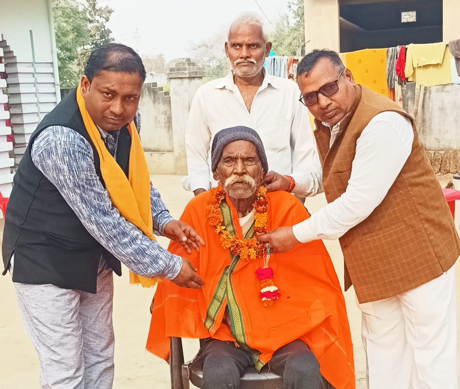*मतुई के अमरपाल सिंह के 100 वर्ष होने पर उन्हें सम्मानित करते लव सिंह गहलौत*