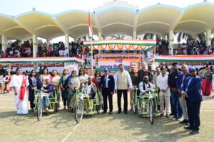 इस अवसर पर CISF के अग्निशमन शाखा द्वारा तिरंगे के रंग की खूबसूरत प्रस्तुति की गई। साथ ही एन एफ एन दिव्यांग पुनर्वास केंद्र के सौजन्य से आस पास के जरूरत मंद दिव्यांगों को तिपहिया सायकिल वितरित किया गया।