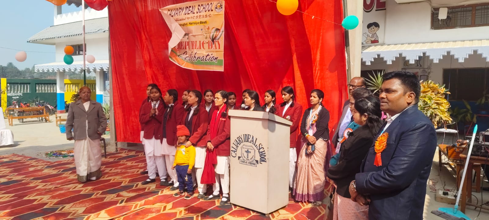 कैलवेरी आइडियल स्कूल में गणतंत्र दिवस के अवसर पर प्रधानाचार्य सुजाता मसीह ने ध्वजारोहण किया बच्चों द्वारा संस्कृत कार्यक्रमों की रही धूम बच्चों द्वारा अनेकों स्वागत गीत प्रस्तुत किया गया इस दौरान छात्रों ने अभिभावकों का मन मोह लिया बच्चों के कार्यक्रम के दौरान खूब बजी तालियां ग्लोबल स्कूल मनिकरपुर रोड नगर पंचायत कप्तानगंज में हर्षोउल्लास के साथ मनाया गया गणतंत्र दिवस स्कूल के प्रांगण में गणतंत्र दिवस के अवसर पर गौरव और उत्साह के साथ मनाया गया गणतंत्र दिवस कार्यक्रम की शुरुआत मुख्य अतिथि राजेंद्र प्रसाद चौधरी द्वारा ध्वजारोहण के साथ किया गया स्कूल के बच्चों द्वारा सरस्वती वंदना संस्कृति कार्यक्रम के साथ अनेकों प्रकार के कार्यक्रम प्रस्तुत किए गए स्कूल के प्रबंधक विशाल सिंह व प्रधानाचार्य ने अतिथियों का आभार ज्ञापित किया।हरिराम चौधरी श्रीमती फूला देवी इंटर कॉलेज महाराजगंज मैं डायरेक्टर दीपक कुमार झंडा रोहण किया गया बच्चों द्वारा सरस्वती वंदना, संस्कृत कार्यक्रम, मां तुझे सलाम, मेरे देश की मिट्टी सोना उगले, शाहिद तमाम कार्यक्रम बच्चों द्वारा प्रस्तुत किया गया व प्रभात फेरी लगाकर भारत माता की जयकारों से गूंजा कस्बा डायरेक्टर दीपक कुमार ने मौजूद लोगों का दिल से आभार ज्ञापित किया। बी.पी.डी.एल. इंटर कॉलेज बिहरा में पूर्व प्रमुख राना दिनेश प्रताप प्रबंधक श्रीमती ज्योतिमा श्रीवास्तव ने झंडा रोहण किया स्कूल के प्रिंसिपल मुकेश कुमार श्रीवास्तव ने अतिथियों का आभार ज्ञापित किया पंडित चतुर्भुज तिवारी विमला देवी इंटर कॉलेज एवं पब्लिक नर्सरी स्कूल नकटीदेई प्रबंधक अनिल कुमार तिवारी ने झंडा रोहण किया बच्चों ने अनेकों प्रकार के कार्यक्रम प्रस्तुत किया श्री राम आश्रय मिश्र लघु माध्यमिक विद्यालय एवं आइडियल कॉन्वेंट स्कूल के गोपीनाथ मिश्र ने झंडा रोहण किया। मां गायत्री इंटर कॉलेज एवं मां गायत्री गंगा प्रसाद मिश्र महिला डिग्री कॉलेज में प्रधानाचार्य डॉक्टर अरविंद कुमार मिश्र ने झंडा रोहण किया।