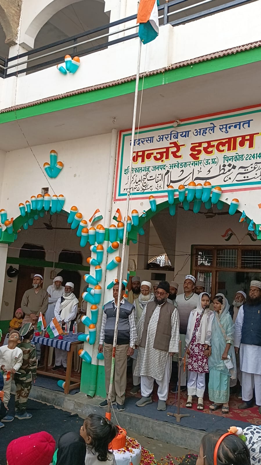 अम्बेडकर नगर।इल्तिफ़ातगंज मदरसा अरबिया अहले सुन्नत मंजरे इस्लाम इल्तिफ़ातगंज में हर्षोल्लास के साथ मनाया गया गणतंत्र दिवस, प्रबंधक हाजी इश्तियाक अहमद द्वारा ध्वजारोहण किया गया इस दौरान प्रधानाचार्य मुफ्ती अब्दुल खबीर , हेड मास्टर फखरुद्दीन साहब, मदरसा के सभी सहायक अध्यापक, और कमेटी के सभी सदस्य एवं क्षेत्रवासी उपस्थित रहे। छात्राओं द्वारा स्कूल में सांस्कृतिक कार्यक्रम का आयोजन हुआ।