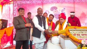 भक्तिमय माहौल के बीच कथावाचक कुंडल जी महाराज एवं आचार्य धरणीधर पाण्डेय द्वारा डॉ. उदय प्रताप चतुर्वेदी को प्रतीक चिन्ह व अंगवस्त्र भेंट कर सम्मानित किया गया। डॉ. चतुर्वेदी ने आयोजन की सराहना करते हुए वरिष्ठ पत्रकार धनुषधर पांडे को बधाई दी और कहा कि श्रीमद्भागवत कथा के श्रवण से आत्मिक शांति के साथ-साथ समाज को सकारात्मक दिशा मिलती है।