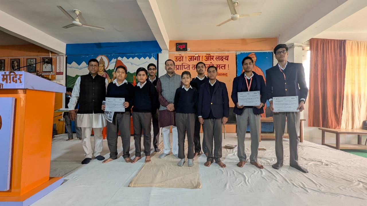 आज विद्यालय के वन्दना सभागार में आयोजित एक विशेष कार्यक्रम में प्रधानाचार्य गोविंद सिंह और आचार्य आनंद राजन पाल के नेतृत्व में सभी विजेता प्रतिभागियों को पुरस्कृत कर सम्मानित किया गया।
