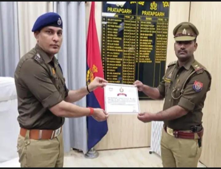 प्रतापगढ़ पुलिस अधीक्षक दीपक भूकर ने मंगलवार को हथिगवां थाने के पुलिसकर्मियों को सम्मानित किया। यह सम्मान गैंगस्टर एक्ट के तहत वांछित और इनामिया अपराधियों की गिरफ्तारी में उनकी सराहनीय भूमिका के लिए दिया गया। पुलिस अधीक्षक कार्यालय में आयोजित एक कार्यक्रम के दौरान इन पुलिसकर्मियों को अदम्य साहस, कर्तव्यनिष्ठा और उत्कृष्ट पुलिसिंग के लिए प्रशस्ति पत्र प्रदान किए गए।हथिगवां थाने से उप निरीक्षक प्रिंस तिवारी, हेड कांस्टेबल संग्राम सिंह, हेड कांस्टेबल अखिलेश कुमार पाण्डेय और कांस्टेबल विपिन सारस्वत को विशेष रूप से सम्मानित किया गया। इन पुलिसकर्मियों ने शातिर अपराधियों की त्वरित और प्रभावी गिरफ्तारी में महत्वपूर्ण भूमिका निभाई, जिससे क्षेत्र में कानून-व्यवस्था मजबूत हुई।इसके अतिरिक्त, थाना रानीगंज से उप निरीक्षक राकेश चौरसिया, कांस्टेबल मुकेश पटेल और रुद्रांश चौबे को भी सम्मानित किया गया। थाना पट्टी से उप निरीक्षक अजय कुमार अंचल, कांस्टेबल राघवेन्द्र यादव और पंकज यादव को भी उनके उत्कृष्ट कार्य के लिए प्रशस्ति पत्र दिए गए। पुलिस अधीक्षक दीपक भूकर ने सभी सम्मानित पुलिसकर्मियों की सराहना की। उन्होंने कहा कि उनका यह साहसिक और निष्ठापूर्ण कार्य अन्य पुलिसकर्मियों के लिए प्रेरणा का स्रोत है। एसपी ने सभी को भविष्य में भी पूरी तत्परता, ईमानदारी और साहस के साथ अपने कर्तव्यों का निर्वहन करते हुए जिले की कानून-व्यवस्था को मजबूत बनाए रखने के लिए प्रेरित किया।