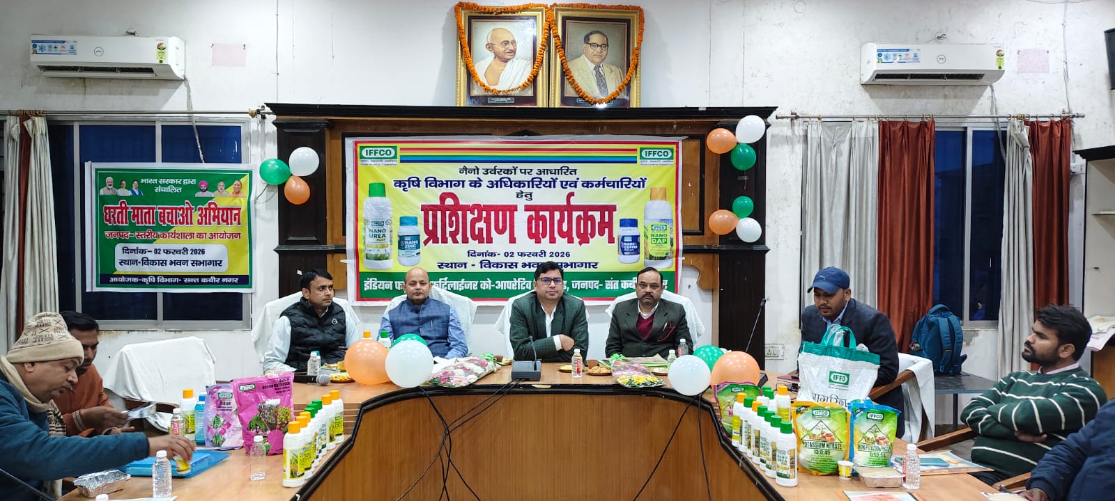 जनपद संत कबीर नगर के विकास भवन सभागार में नैनो उर्वरकों पर आधारित कृषि विभाग के सभी अधिकारियों एवं कर्मचारियों हेतु प्रशिक्षण कार्यक्रम आयोजित किया गया जिसमें मुख्य अतिथि के रूप में डॉ सर्वेश कुमार यादव जी, जिला कृषि अधिकारी, संत कबीर नगर, गोरखपुर से पधारे वरिष्ठ क्षेत्र प्रबंधक डॉ वीके सिंह जी, सहा आयुक्त एवं सहा निबंधक श्री आनंद कुमार मिश्रा जी, एस- पी पी ओ श्री अजय दीप सिंह, इफको क्षेत्र प्रतिनिधि आशीष वर्मा, SFA गिरजेश मौर्य, SFA हॉटस्पॉट पंकज चौधरी, जनपद के सभी एडीओ- कृषि, प्राविधिक सहायक, एटीम, बीटीएम सहित लगभग 55 लोगों ने प्रतिभाग किया।