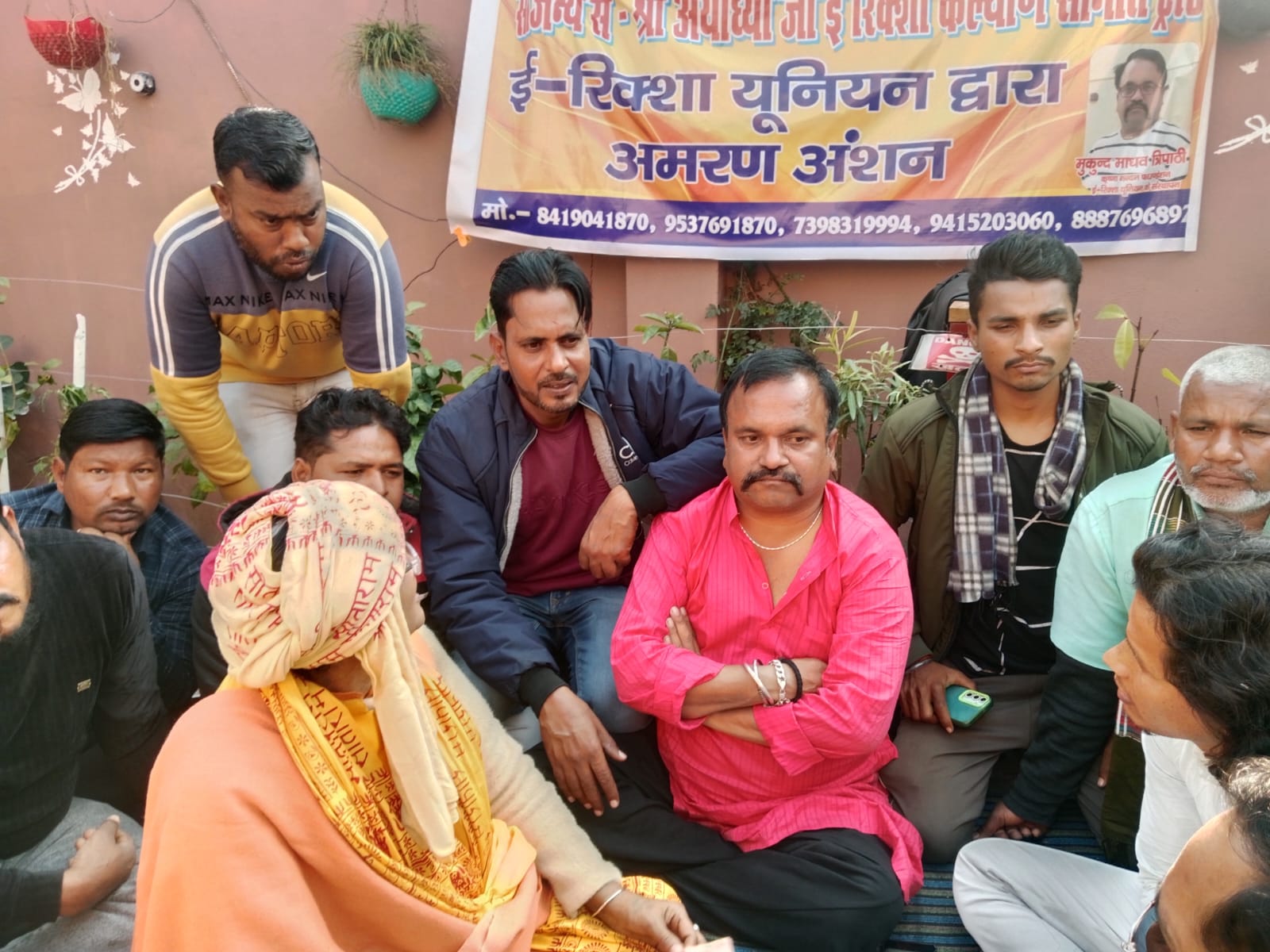 अयोध्या। अपनी मांगों और आत्मसम्मान की रक्षा के लिए ‘कृष्णानन्द फाउण्डेशन ई-रिक्शा यूनियन’ और ‘श्री अयोध्या जी ई-रिक्शा कल्याण समिति ट्रस्ट’ के बैनर तले ई-रिक्शा चालकों ने आमरण अनशन शुरू कर दिया है। इस विरोध प्रदर्शन ने अब एक बड़ा रूप ले लिया है, क्योंकि इसमें अयोध्या के मठ-मंदिरों के साधु-संतों और व्हीलचेयर संघ ने भी अपना पूर्ण समर्थन घोषित कर दिया है।