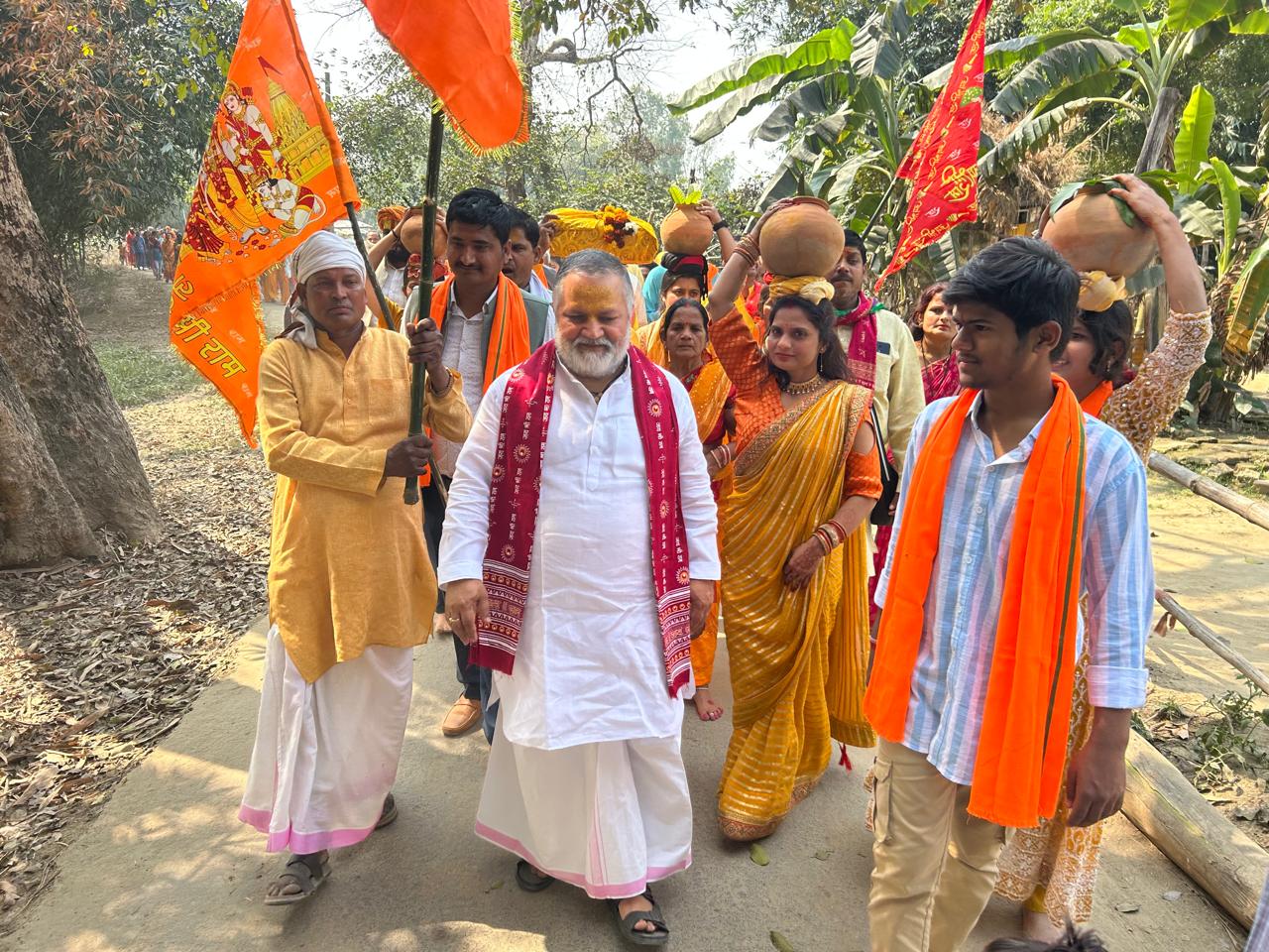 कलश यात्रा गांव के विभिन्न मार्गों से होते हुए मनोरमा नदी के तट पर पहुंची, जहां श्रद्धालुओं का जनसैलाब उमड़ पड़ा। महिलाओं ने सिर पर कलश धारण कर मंगल गीत गाए। नदी तट पर विधि-विधान से पूजन-अर्चन के बाद कथा स्थल पर कार्यक्रम का विधिवत शुभारंभ किया गया।