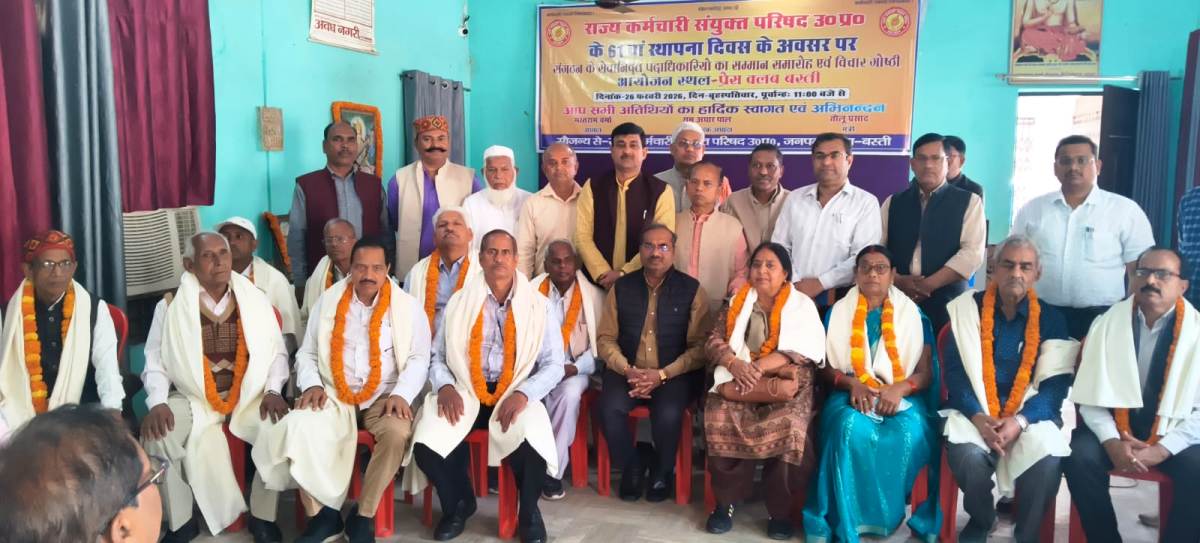 बस्ती । राज्य कर्मचारी संयुक्त परिषद का 61 वां स्थापना दिवस प्रेस क्लब सभागार में उल्लास के साथ मनाया गया। इस अवसर पर परिषद अध्यक्ष मस्तराम वर्मा के संयोजन में परिषद के सेवा निवृत्त कर्मचारी नेताओं को अंग वस्त्र, प्रशस्ति-पत्र भेंटकर फूल मालाओं के साथ सम्मानित किया गया।
