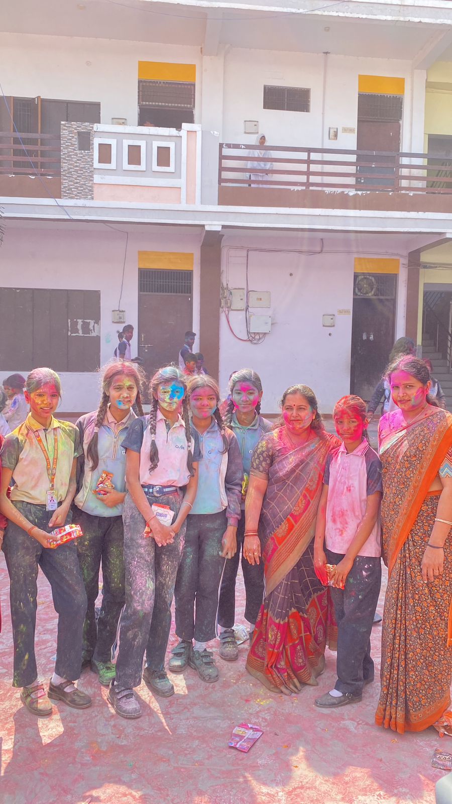 जी वी एम कान्वेंट स्कूल के बच्चों ने भेदभाव भूल कर अबीर एवं गुलाल की होली खेली
