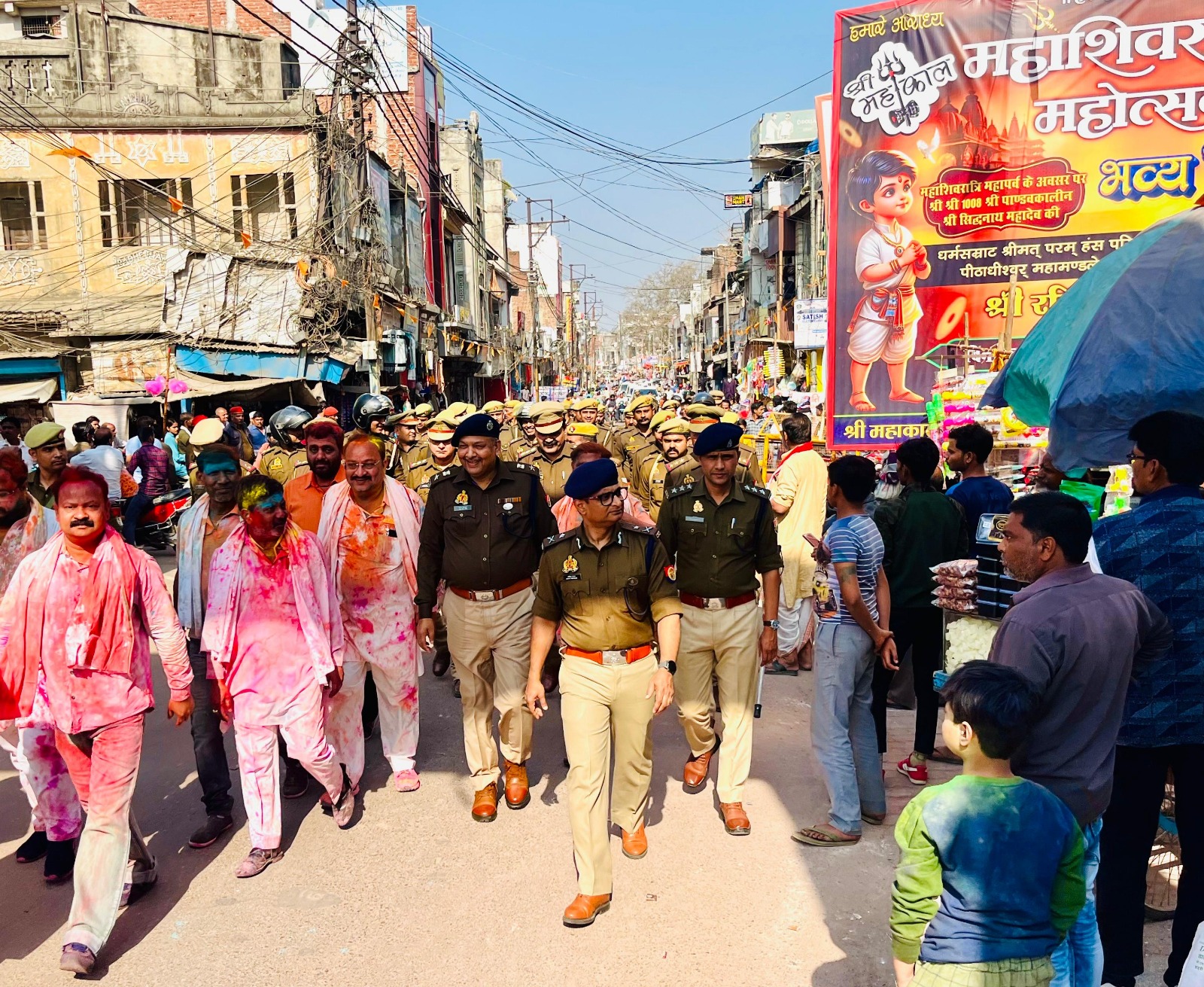 समस्त क्षेत्राधिकारीगण द्वारा अपने-अपने क्षेत्र में पर्याप्त पुलिस बल के साथ संवेदनशील/मिश्रित आबादी वाले क्षेत्रों, प्रमुख बाजारों एवं भीड़-भाड़ वाले स्थानों पर फ्लैग मार्च किया गया है । इसी क्रम में प्रभारी निरीक्षक/थानाध्यक्ष गण द्वारा पर्याप्त पुलिस बल, पीआरवी डॉयल-112 के साथ अपने-अपने थाना क्षेत्र में फ्लैग मार्च कर आमजन, दुकानदारों, सर्राफा व्यवसायियों एवं व्यापारी बन्धुओं को सुरक्षा का एहसास कराते हुए त्योहारों को हर्षोल्लास के साथ आपसी भाईचारे को कायम रखते हुए मनाने तथा कानून एवं शांति व्यवस्था को अक्षुण्ण बनाये रखने हेतु पुलिस/प्रशासन का सहयोग करने की भी अपील की गयी ।