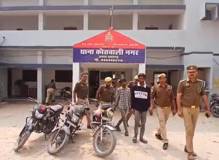प्रतापगढ़ पुलिस ने मोटरसाइकिल चोर गिरोह का पर्दाफाश किया है। पुलिस ने इस मामले में तीन आरोपियों को गिरफ्तार किया और उनके पास से चोरी की तीन मोटरसाइकिलें बरामद की हैं। यह कार्रवाई नगर कोतवाली क्षेत्र में की गई। यह मामला तब सामने आया जब फतनपुर थाना क्षेत्र के पूरे गौरा बादल गांव निवासी एक युवक अपने रिश्तेदार को ट्रेन पकड़वाने के लिए प्रतापगढ़ रेलवे स्टेशन आया था। इसी दौरान स्टेशन के पास खड़ी उसकी मोटरसाइकिल अज्ञात चोरों ने चुरा ली थी। पीड़ित की शिकायत पर नगर कोतवाली में अज्ञात चोरों के खिलाफ मुकदमा दर्ज किया गया था।पुलिस ने मामले की जांच शुरू की और सीसीटीवी फुटेज खंगाले। फुटेज के आधार पर आरोपियों की पहचान की गई, जिसके बाद पुलिस ने मोहम्मद साजिद (20 वर्ष), शिवम बाल्मीकि (22 वर्ष) और हरिकेश को उनके घर के पास से गिरफ्तार कर लिया। पुलिस के अनुसार, शिवम बाल्मीकि पर पहले से तीन मुकदमे दर्ज हैं। पुलिस पूछताछ में मोहम्मद साजिद और शिवम बाल्मीकि ने बताया कि उनका चार लोगों का गिरोह है। यह गिरोह अलग-अलग जगहों से मोटरसाइकिलें चोरी कर उन्हें सस्ते दामों पर बेच देता था और उसी पैसे से अपना खर्च चलाता था। आरोपियों ने स्वीकार किया कि बरामद मोटरसाइकिलों में से एक को 20 फरवरी 2026 की रात बाबागंज से और दूसरी को 7 मार्च को प्रतापगढ़ रेलवे स्टेशन के पास से चुराया गया था। इसके अलावा, काफी समय पहले प्रयागराज रेलवे स्टेशन के पास से भी एक मोटरसाइकिल चोरी की गई थी। आरोपियों की निशानदेही पर पुलिस खजुरनी पुलिया के नीचे छिपाकर रखी गई दो मोटरसाइकिलें बरामद करने पहुंची। वहां उनके दो साथी हरिकेश उर्फ भोटू और सलमान भी मौजूद थे। पुलिस के पहुंचने पर अंधेरे का फायदा उठाकर दोनों मौके से फरार हो गए। हालांकि, पुलिस ने बाद में फरार आरोपी हरिकेश उर्फ भोटू को उसके घर से गिरफ्तार कर लिया। पुलिस फरार आरोपी सलमान की तलाश में लगातार दबिश दे रही है।