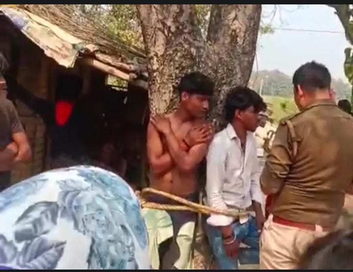 ग्रामीणों ने हमलावरों को पेड़ से बांधा रस्सी से बांधकर पीटा, फोन पर कहासुनी के बाद घर में घुसकर मारपीट की थी