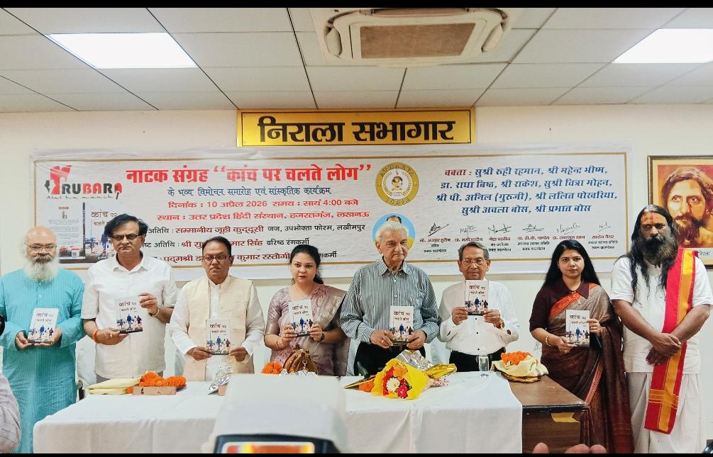 लखनऊ। रूबरू फाउंडेशन के तत्वावधान में बहुप्रतीक्षित ड्रामा संग्रह “कांच पर चलते लोग” का भव्य लोकार्पण हिंदी संस्थान, हज़रतगंज में गरिमामय एवं सांस्कृतिक वातावरण के बीच संपन्न हुआ। कार्यक्रम ने साहित्य, रंगमंच और समकालीन चिंतन का एक सुंदर संगम प्रस्तुत किया।