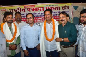 इस अवसर पर राष्ट्रीय पत्रकार एकता संघ के मंच से उत्तर प्रदेश के प्रदेश अध्यक्ष पद पर मान्यता प्राप्त पत्रकार फूलचंद चौधरी को मनोनीत किए जाने की घोषणा की गई, जिसका उपस्थित पत्रकारों ने तालियों की गड़गड़ाहट के साथ स्वागत किया।